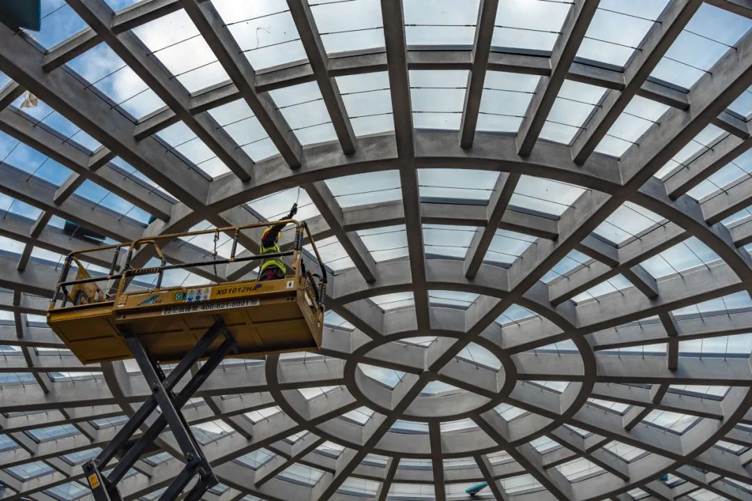 面对永康市政府重点工程项目——国家林草装备创业园的幕墙施工挑战,项目团队迎难而上。他们克服了工期紧张、高温酷暑、工作面受限、幕墙构型复杂等重重困难,与项目总包单位新华建设紧密合作,共同探索解决方案。项目团队通过成立技术攻关小组,在原有吊装工艺的基础上,勇于创新,经过无数次的尝试与改进,终于开辟出一条全新的施工路径。